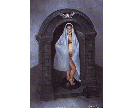 MARIANELA DE LA HOZ Las mujeres Católicas son menos pecadores Catholic women commit less sins 2004 egg tempera on board 4.3 x 2.9 inches Private Collection