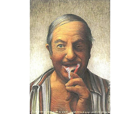 MARIANELA DE LA HOZ Me saqué un ojo con el cepillo de dientes I took out an eye with a toothbrush 2004 egg tempera on board 3.2 x 2.3 inches Private Collection