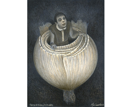 MARIANELA DE LA HOZ Capas de Tiempo, piel de cebolla Layers of Time, Onion Skin 2007 egg tempera on board 4 x 3 inches Private Collection