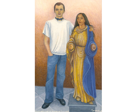 MARIANELA DE LA HOZ Versión autorizada de un noviazgo oficial Authorized Version Of An Official Engagement 2008 egg tempera and gold leaf on board 4.4 x 2.5 inches Collection, San Diego Museum of Art