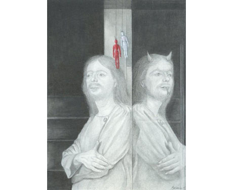 MARIANELA DE LA HOZ A Imagen y Semejanza Image and Likeness 2009 silver point, ink, pencil and red and white watercolor on paper 6 x 5.75 inches