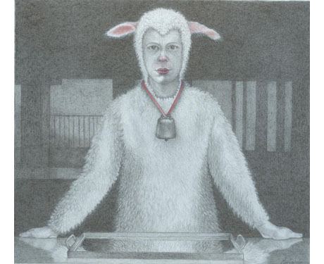 MARIANELA DE LA HOZ Mam‡ siempre pens— como un cordero Mother Always thought like a Lamb 2009 graphite, silver point and egg tempera on paper 5.7 x 6.5 inches