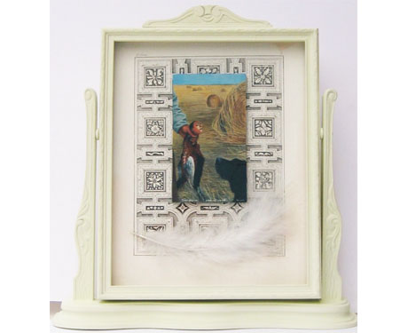 MARIANELA DE LA HOZ Tienes dos ojos y nos ves, tengo dos alas y no vuelo You Have Two Eyes and Can't See, I Have Two Wings and Can't Fly 2010 egg tempera and mixed media 12 x 11 x 3 inches