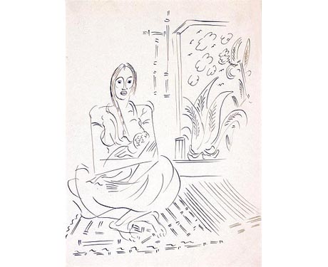 GUNTHER GERZSO Mother and Child in Room c. 1935-1941 ink on paper 10.875 x 8.5 inches Private Collection