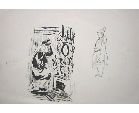 GUNTHER GERZSO Old Woman Looking in Mirror and Figure Study c. 1935-1941 ink on paper 14 x 20 inches