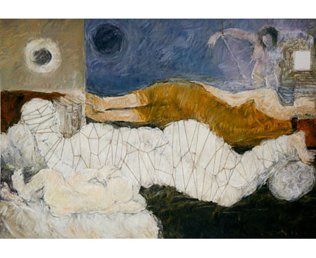 oil, strings on canvas