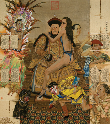 LIU YAN The Man's World, 2007 Ink and Mixed Media on Chinese Book Paper, Mounted on Silk 57.125 x 51.125 inches